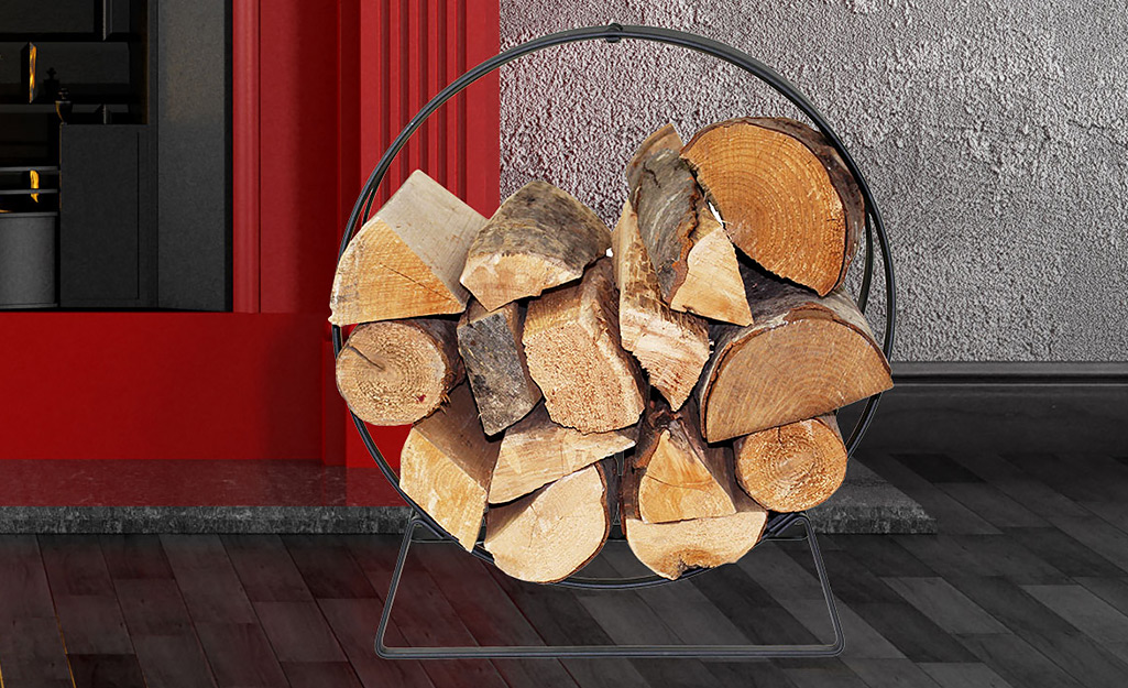 If you buy a bundle of wood wrapped in plastic, make sure it’s already dry or unwrap it when you get home. If it still feels wet, stack it on a firewood rack in a sheltered spot off the ground and let it continue to dry. However, don’t lean or stack firewood against your house or any other structure to avoid possible infestation from pests that might be in the wood.